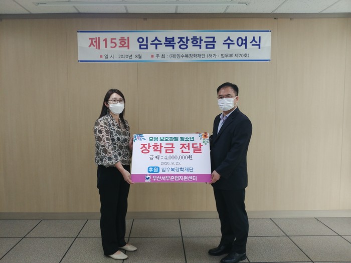 [로컬세계 맹화찬 기자]부산서부준법지원센터(소장 김정렬)는 코로나19 등으로 경제적인 어려움을 겪고 있는 청소년 보호관찰대상자 8명을 선발, 총 400만원의 장학금을 전달했다고 25일 밝혔다.