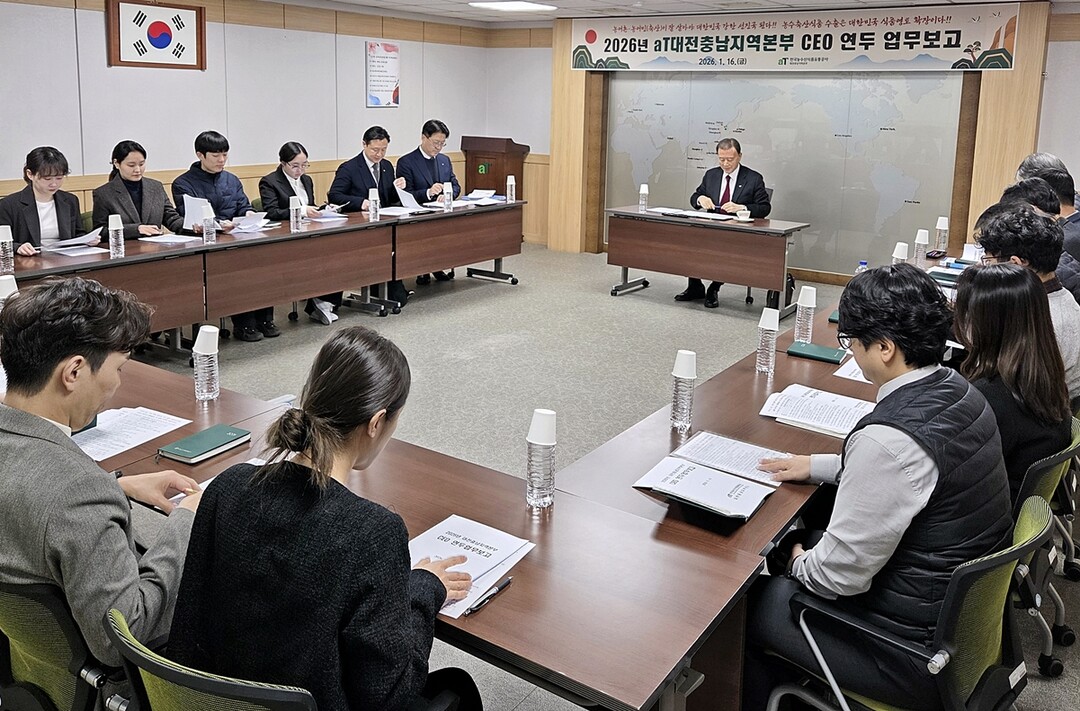 [로컬세계 = 지차수 기자] 한국농수산식품유통공사(aT) 홍문표 사장은 1월 16일 전국 5개 지역본부로부터 현장 업무보고를 받고 신품종 발굴과 수출 확대를 통한 K-Food 경쟁력 강화를 당부했다.