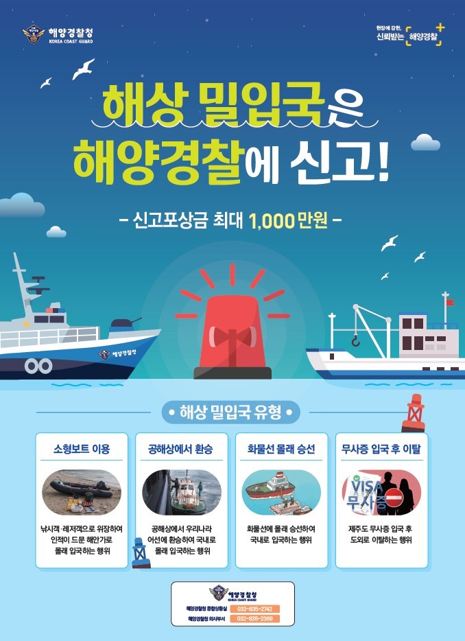한편 해경은 해상 밀입국 등 중요 국제범죄 신고자에게 최고 1000만원의 신고 포상금을 지급한다.