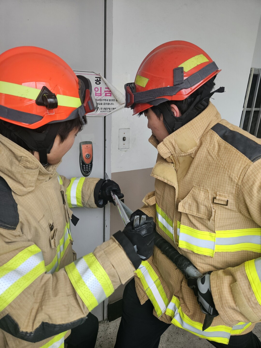 훈련 내용은 ▲방화문 구조 이해 ▲현장 대응 기술 공유 ▲방화문 개방 시 유의사항 교육 ▲문 개방 기구·유압 장비·지렛대 등을 활용한 강제 개방 실습 등으로 구성됐으며, 실제 재난 현장에서 요구되는 기술과 절차를 중심으로 진행됐다.