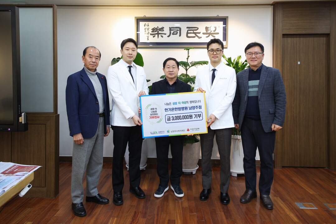 [로컬세계 = 김민주 기자]경기 남양주시는 8일 호평동에 위치한 한가온한방병원 남양주점이 지역 내 취약계층 지원을 위해 후원금 300만원을 기탁했다고 밝혔다.