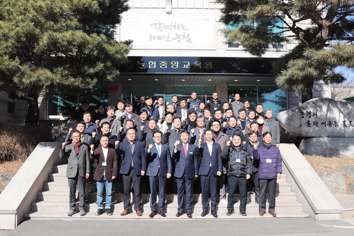 ▲ 농협중앙회 인재개발원이 주관하는 ‘시군지부장 역량강화교육’ 입교식이 경기 고양시 농협중앙교육원에서 30일에 실시된 후 이재식 농협중앙회 부회장 및 시군지부장이 기념촬영을 하고 있다. 농협 제공 |