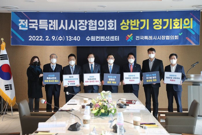 허 시장(대한민국특례시시장협의회장)은 “2월 임시 국회 중 지방분권법 개정안이 통과될 수 있도록 행안부 장관과 여야 국회의원들을 만나 전방위적 입법 지원이 필요하다”고 말하며, 4개 특례시 시장들과의 공조와 협조를 당부했다.