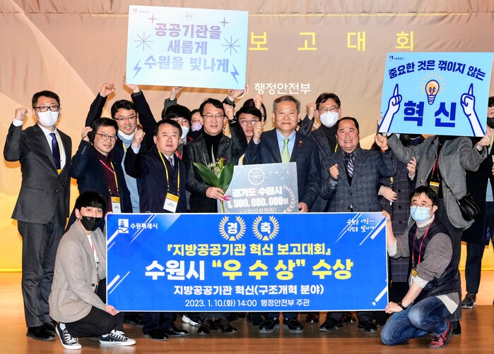 기초지자체 시 부문에서 우수기관으로 선정된 수원시는 이날 혁신 보고대회에서 기초자치단체를 대표해 혁신 우수사례를 발표했다.