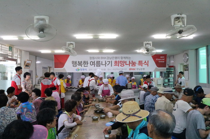 [로컬세계 권인진 기자]경남 창원시와 BNK금융그룹 경남은행은 30일 마산 적십자 봉사관에서 여름철 저소득 가정의 건강한 여름나기 지원을 위해 ‘소외계층 희망나눔 특식 행사’를 열었다고 밝혔다.