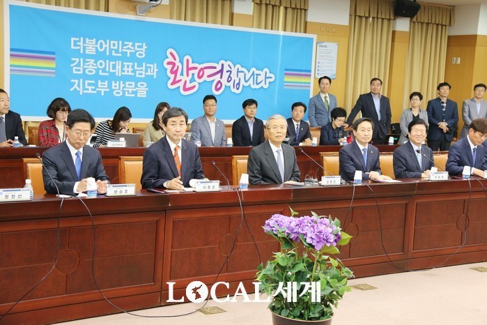 [로컬세계 오영균 기자] 더불어민주당은 김종인 비대위 대표, 이종걸 원내대표 등 당 지도부와 지역 국회의원 및 당선인이 대전시를 방문해 당선 인사와 함께 정책간담회를 개최했다.