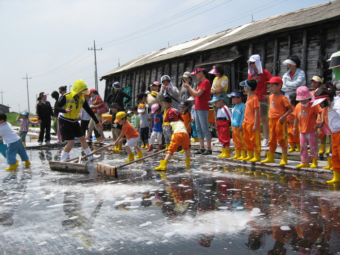 ▲만돌어촌마을에서 염전체험을 하고 있는 모습.(고창군 제공) |