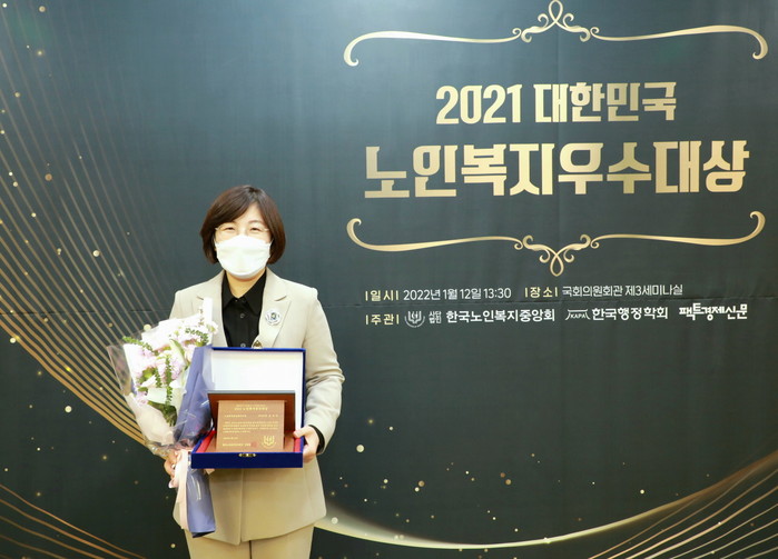 2021년 대한민국 노인복지우수대상은 한국노인복지중앙회와 한국행정학회 등 4개 단체가 공동 주관하여 ▲노인인구 1인당 노인복지 예산 ▲노인인구 1천명 당 요양기관 정원 ▲노인장기요양보험 신청자 대비 인정자 비율 ▲종사자 처우개선 예산(시비) ▲노인일자리 예산(시비) 노인복지 부분을 심사해 광역자치단체 및 기초자치단체 각각 5개소씩을 선정·시상했다.