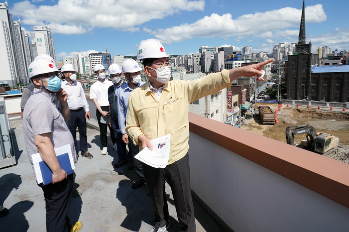 현장을 살펴본 유 구청장은 관계자들에게 일체의 안전관리에 대한 각별한 주의를 당부했다.