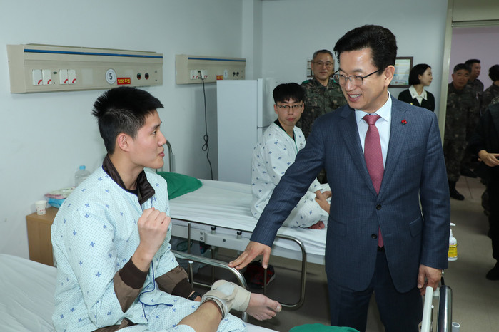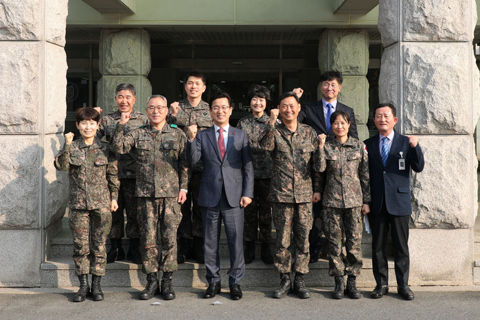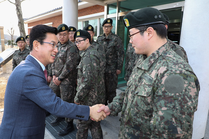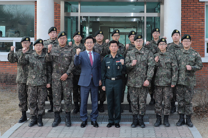 허태정 대전시장은 설을 맞아 22일 오후 자운대에 위치한 육군종합군수학교와 국군대전병원을 방문해 국가 안보를 위해 복무에 전념하고 있는 장병들을 격려하고 위문금을 전달했다.(사진=대전시 제공)
