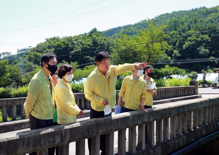 ▲이상호 시장이 26일 주요 공공투자 사업장 3개 부서 5개 사업장 현장을 점검하고 있다.태백시 제공 |