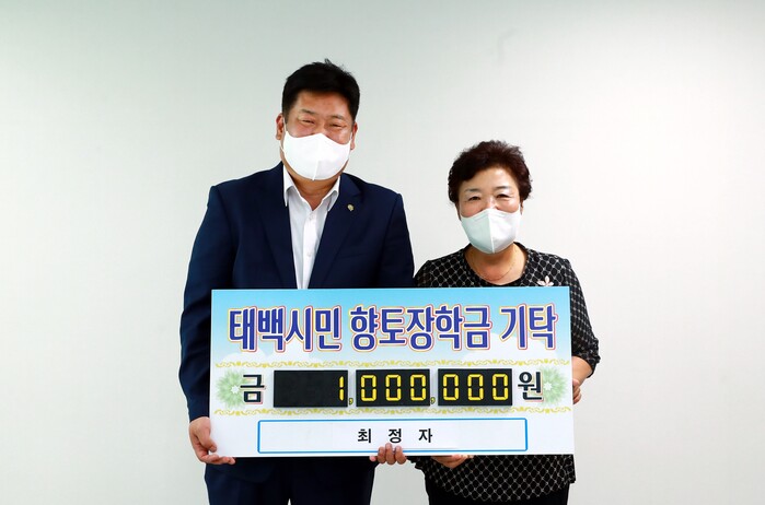 ▲향토장학금 기탁(최정자). 태백시 제공 |