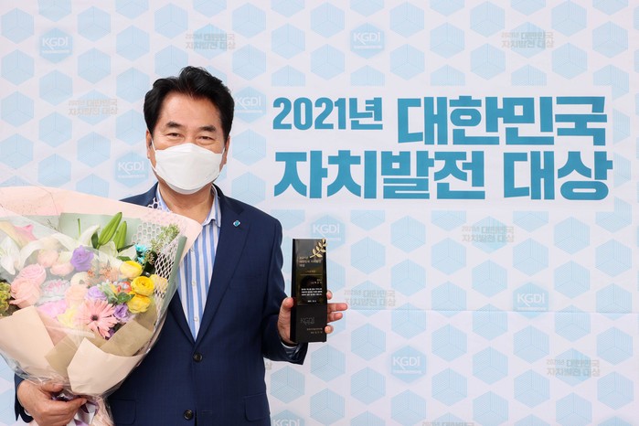 [로컬세계 김병민 기자]경기 용인시는 백군기 시장이 5일 서울 용산구 백범 김구기념관 컨벤션홀에서 열린 ‘2021 대한민국 자치발전 대상’에서 기초 부문 대상을 수상했다고 밝혔다.