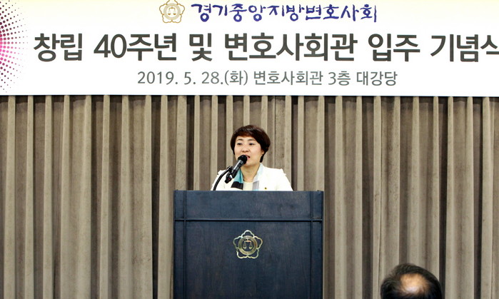 안혜영 부의장은 이날 인사말을 통해 “지난 3월 수원고법·수원고검이 개원했고, 오늘 경기중앙지방변호사회의 새 청사는 회원들의 정성으로 마련돼 그 의미가 더욱 깊다고 할 수 있다”면서 “그간 법률문제 해결을 위해 서울까지 가야했던 850만 경기남부 도민이 이제 경기도에서 질 높은 법률 서비스를 받게 되 기쁘다”고 말했다.