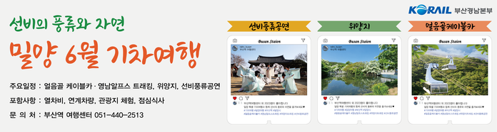 다음 달 1일부터 판매되는 이번 상품은 밀양의 대표 문화 유산인 선비풍류 공연 관람과 더불어 얼음골 케이블카, 영남알프스 및 위양지 트래킹 등 밀양 대표 관광지를 방문하는 상품이다.