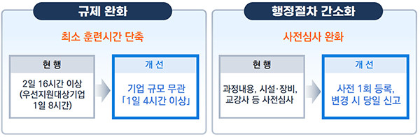 우선 사업주 훈련 지원요건을 완화하고 기업의 자율성을 높인다. 최소 훈련시간을 대폭 단축해 마이크로 러닝 등 기업 실정에 맞는 다양한 훈련이 이뤄질 수 있도록 하고 행정절차도 간소화한다.