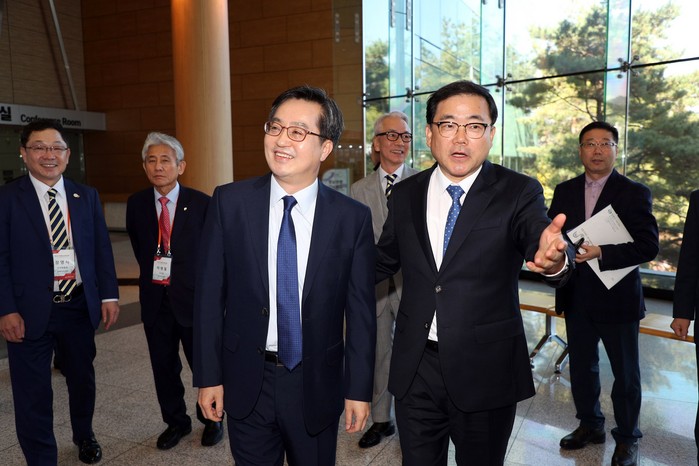 [로컬세계 권인진 기자]허성무 시장이 31일 창원에서 열리는 제23차 세계한인경제인대회의 임원간담회 등을 위해 창원을 찾은 김동연 경제부총리 겸 기획재정부 장관을 만나 고용·산업위기 특별지역에 따른 지역경제 조기 정상화를 위해 창원시 산업체질 개선을 위한 4가지 전략사업을 건의했다.