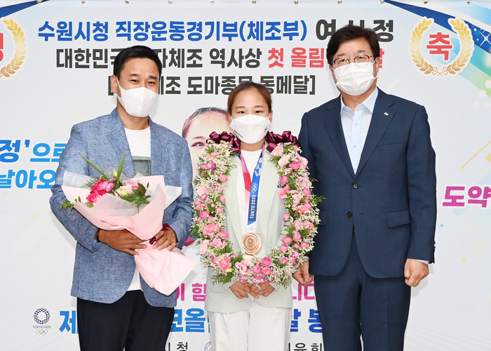 여서정 선수는 “수원시청에 서 많은 지원을 해주시고, 염태영 시장님을 비롯한 수원시민들의 응원과 격려 덕분에 메달까지 따게 된 것 같아 감사하다”고 소감을 전했다.