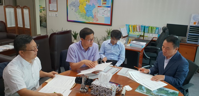 ▲유태호 시장(오른쪽에서 두번째)이 6일 염동열 국회의원을 방문 지역 현안사업에 대해 건의하고 있다. |