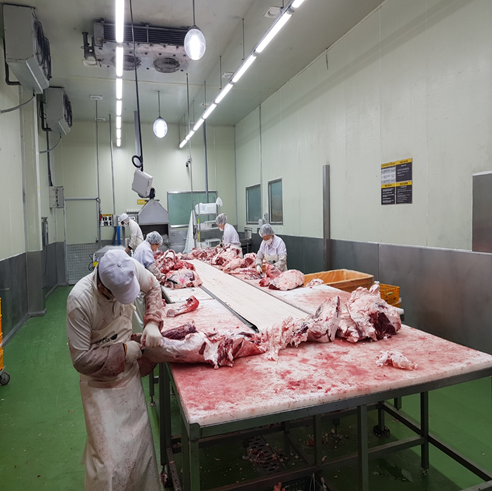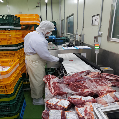 ▲ 군납 원료육 공급업체 가공 작업장 모습. |