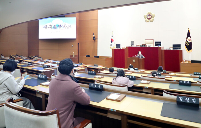 시의회를 방문한 학생들에게 박은미 부의장은 “앞으로도 많은 학생이 의회를 방문하여 시민들과 함께 만들어 가는 의회가 되었으면 한다.”라며 수내초등학교 2학년 학생들을 환영하였고, 서희경 의원은 “성남시의회 견학을 통해 어렵게 느껴졌던 지방의회에 대해 학생들이 쉽게 다가가길 바란다.”라며 환영의 인사말을 전했다.