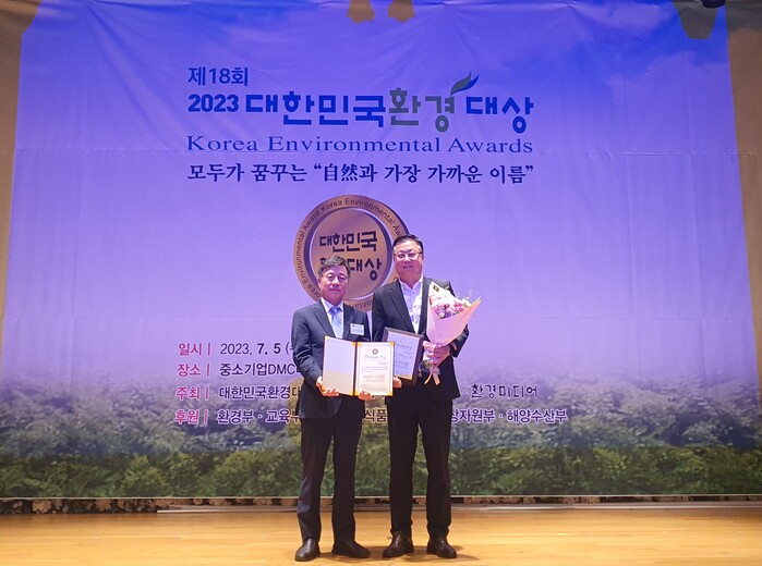 ▲ 제18회 ‘2023대한민국환경대상’ 수상 사진. 기노선 부사장(우측) |