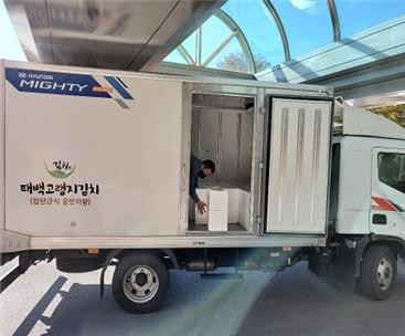 [로컬세계 박상진 기자]강원 태백 철암농공단지 내 태백고랭지김치(대표 정선주)는 지난 20일 태백시에 지역의 저소득층 어려운 이웃에게 전해달라며 5kg들이 김치 100상자(430만원 상당)를 지정 기탁했다.