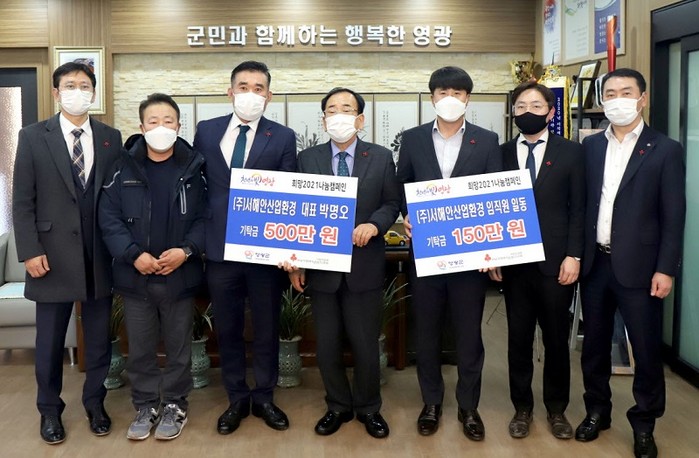 [로컬세계 오승용 기자]전남 영광군은 지난 24일 ㈜서해안산업환경(대표 박명오)에서 임직원들이 하나 된 마음으로 이웃사랑을 실천하고자 영광군에 희망을 이어주는 650만원을 기탁했다고 28일 밝혔다.