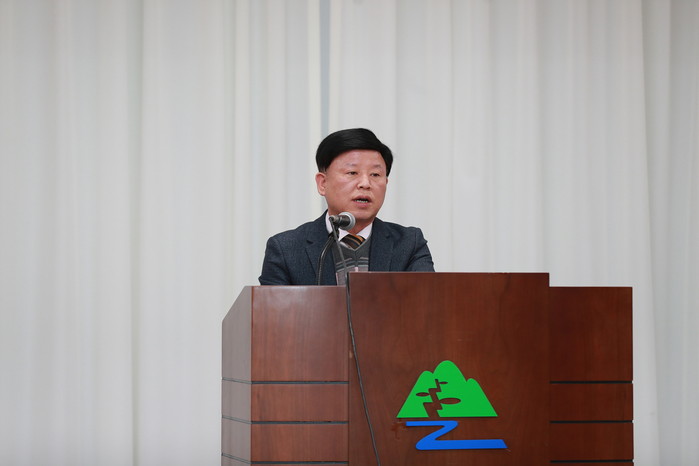 ▲2일 강원 태백시 부시장 취임식에서 천부성 부시장이 취임사를 전하고 있다.(태백시 제공) |
