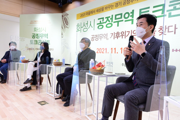 | ▲서철모 화성시장이 ‘공정무역 토크콘서트’에서 발언을 하고 있다. 화성시 제공 |