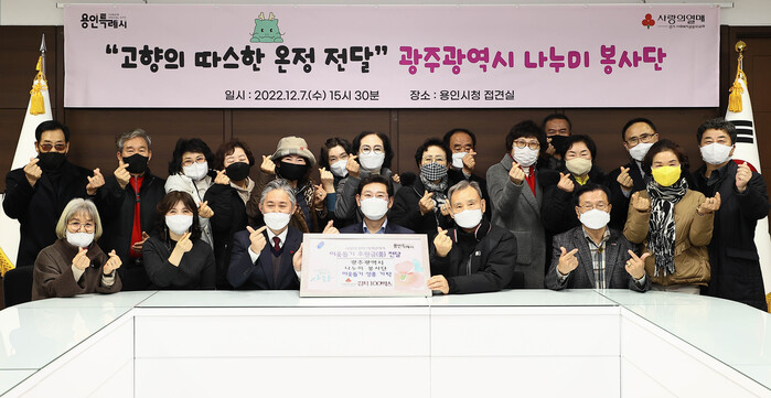 이상일 시장은 "멀리 광주광역시에서부터 용인까지 찾아와 어려운 이웃을 돕기 위한 온정을 전해주신 김경미 회장님을 비롯한 나누미봉사단에 감사 인사드린다"며 "잔잔한 미풍이 기력 잃은 새를 다시 날게 하는 힘이 되는 것처럼, 오늘의 나눔이 소외된 이웃들을 다시 일으키는 큰 힘이 될 것"이라고 화답했다.