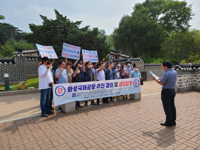 [로컬세계=김병민 기자] 경기남부 화성국제공항 건설을 찬성하는 경기남부 통합국제공항 추진단(단장 전진수) 등 4개 단체가 연합해 25일 오전 10시 화성국제공항 추진결의 및 문화탐방을 개최했다.