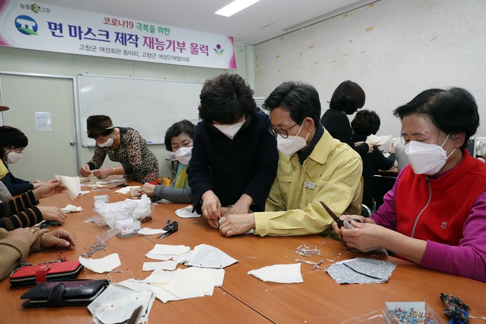 이번 천 마스크 제작은 고창군 여성회관 양장기능사 교육수료생들의 모임에서 시작됐다. 소식을 들은 손뜨개반, 떡디저트반 수강생은 물론 고창군여성단체협의회 회원들도 천 마스크를 제작 재능기부에 동참했다.