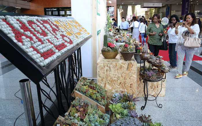 | ▲서울 코엑스 동문 로비에 전시된 작품들.(경기도농업기술원 제공) |