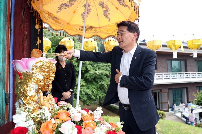 [로컬세계=김병민 기자]경기 수원특례시의회 김기정 의장은 27일 오전 수원시 영통구 반야사에서 열린 불기 2567(2023)년 부처님오신날 봉축법요식에 참석했다.
