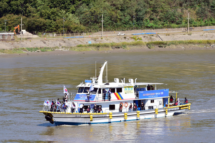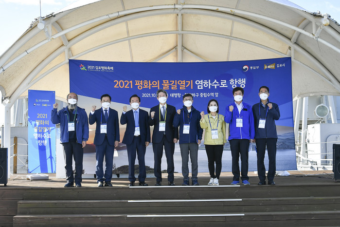 이날 항행에는 이인영 통일부 장관과 정하영 김포시장, 신명순 김포시의회 의장, 김주영 국회의원, 박상혁 국회의원과 김만기 국방부 정책실장 등이 참석했다.