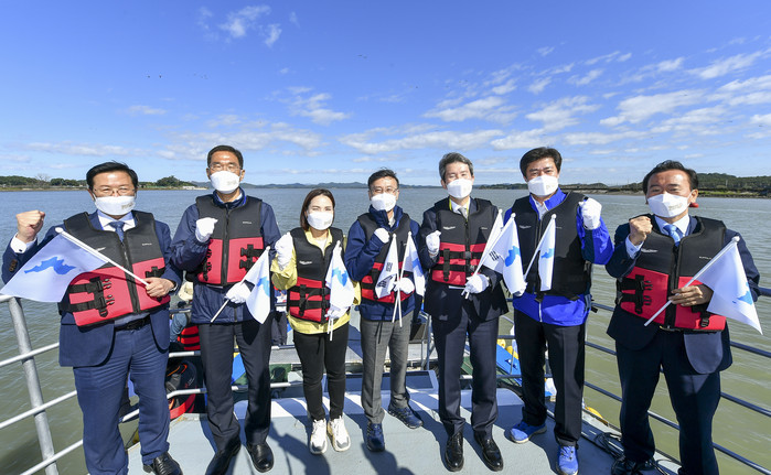 [로컬세계 김병민 기자]13일 경기 김포시가 통일부와 공동 주최로 ‘2021 평화의 물길열기 염하수로 항행’ 행사를 개최했다.