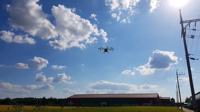 무인항공방제는 기후 영향을 적게 받으며 방제차량으로 소독이 어려운 축사 지붕을 비롯한 농장주변 등 필요한 곳에 적정량의 소독약을 안전하게 살포할 수 있는 장점을 갖춘 효과적인 방역 방법 중 하나다.