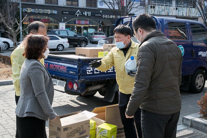 [로컬세계 양해수 기자]전북 군산시가 신종 코로나 바이러스 예방을 위해 읍면동에 압축분무소독기와 소독제를 대여하며 예방활동을 강화한다.