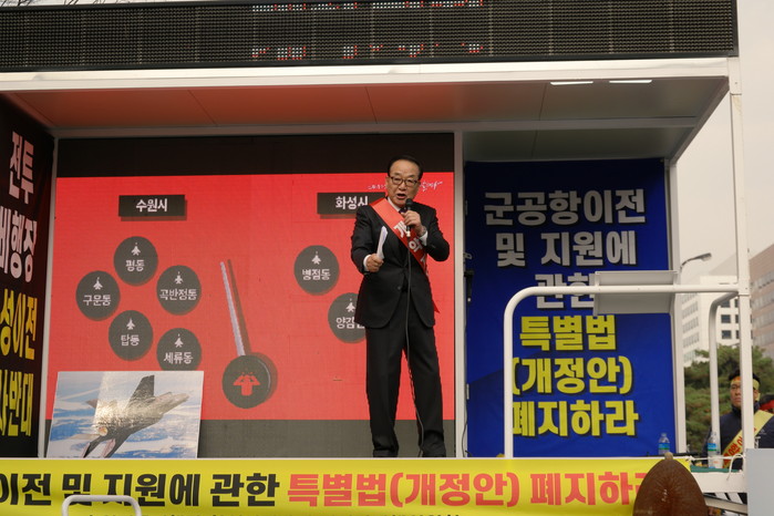 서 의원은 “지금까지는 군 공항을 이전하기 위해서는 이전하려는 지역의 자치단체장, 즉 화성시장이 절대적인 권한을 가지고 막을 수 있는 제도적 장치가 있었는데 지난달 군공항 이전 특별법 개정안이 발의됐다”며 “지방자치의 기본을 무시한 특별법 개정안은 마치 군사정권 시절처럼 일방적으로 480여 일 만에 군공항을 이전하겠다는 내용을 담고 있는 악법 중에 악법”이라고 지적했다.