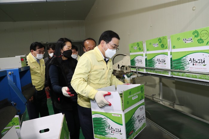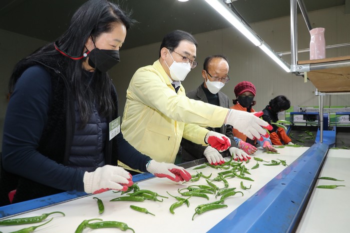 [로컬세계 한용대 기자]허성무 창원시장은 10일 의창구 대산면에서 창원의 대표 농산물 중 하나인 청양고추 재배농가 출하・선별 작업장을 방문했다.