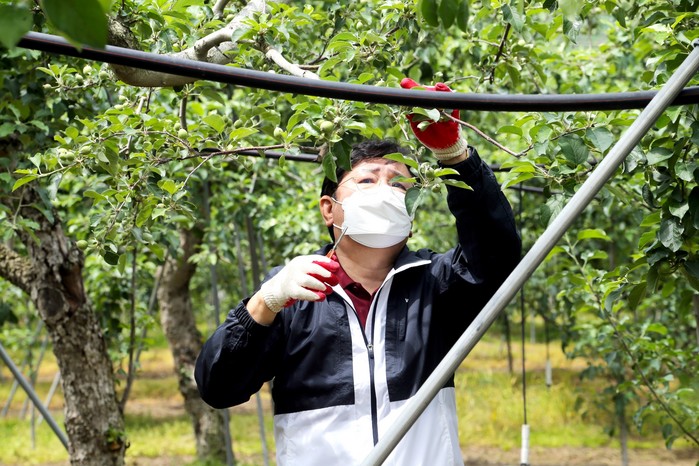 [로컬세계 이창재 기자]권영세 안동시장은 24일 봄철 농번기에 일손이 부족한 농가에 도움이 되고자 직원들과 임하면 사과 농가를 찾아 접과 작업을 실시했다.