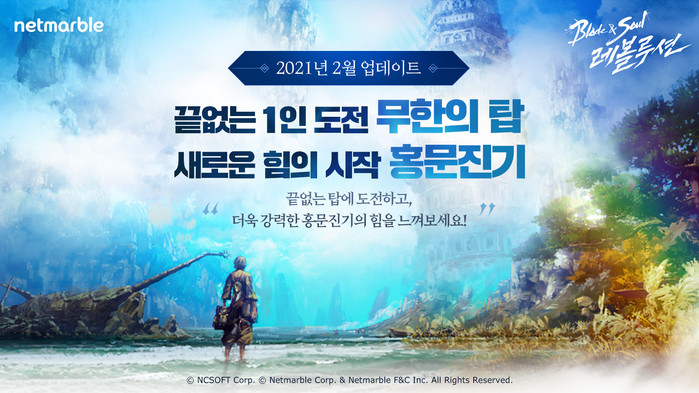 넷마블(대표 권영식, 이승원)은 모바일 MMORPG(다중접속역할수행게임) '블레이드 & 소울 레볼루션(개발사 넷마블에프앤씨)’에 1인 도전 콘텐츠 ‘무한의 탑’, 성장 콘텐츠 ‘홍문진기’ 등을 추가하고 봄맞이 이벤트를 진행한다고 밝혔다.