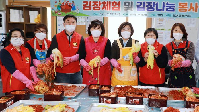 [로컬세계 김병민 기자](사)한국장애인부모회 안성시지부(지부장 김을순)는 23일 장애인 자녀 가족 25명과 함께 김장체험 가족워크숍 행사를 가졌다.