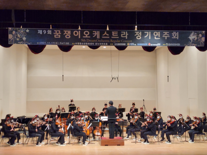 영상으로 축사를 한 염태영 수원시장은 “꿈쟁이 오케스트라 단원들이 만들어낸 천상의 하모니가 깊어가는 가을밤의 운치를 더해준다”며 “정기연주회를 준비하며 구슬땀을 흘린 학생들에게 아낌없는 박수와 격려를 보낸다”고 말했다.