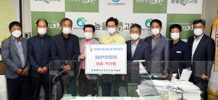 6일 전봉준장군동상건립위원회(공동위원장 진윤식, 정남기)에 따르면 이날 오전 동상 건립을 위해 사용해달라며 공음면 이장단협의회(협의회장 정경열, 부회장 최경연, 총무 전홍일, 재무 최영동)에서 100만원 성금을 기탁했다.