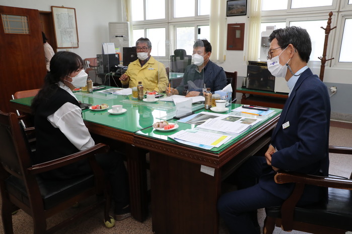 이날 유 군수는 심원면 행정복지센터에서 코로나19 방역수칙을 철저히 준수하며 해안가 자전거 도로 보수, 비가림시설 설치 등 주민들의 각종 불편사항을 경청하고, 해결책을 함께 모색하는 시간을 가졌다.