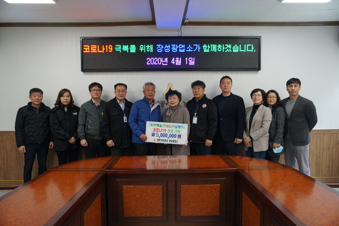 [로컬세계 박상진 기자]대한석탄공사 장성광업소(소장 김길한)와 노동조합 장성지부(지부장 최인강)은 1일 오전 장성광업소 회의실에서 노·사합동으로 코로나19 성금 전달식을 가졌다.