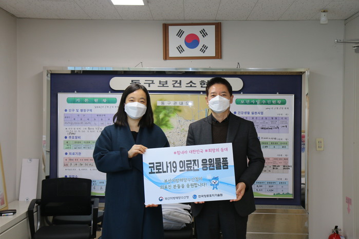 [로컬세계 맹화찬 기자]부산지방해양수산청(청장 강용석)은 23일 부산광역시 동구·중구보건소에 의료진 응원 문구가 새겨진 무릎담요(200개)와 액자를 전달했다.