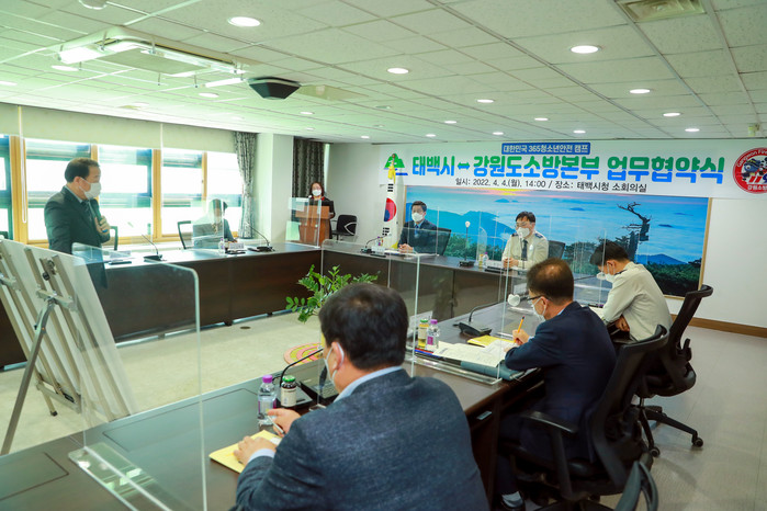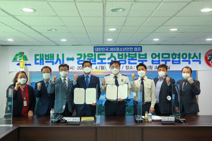 [로컬세계 박상진 기자]강원 태백시는 강원도소방본부는 4일 태백시청 소회의실에서 365세이프타운 활성화를 위한 대한민국 청소년안전캠프 업무협약식을 개최했다.